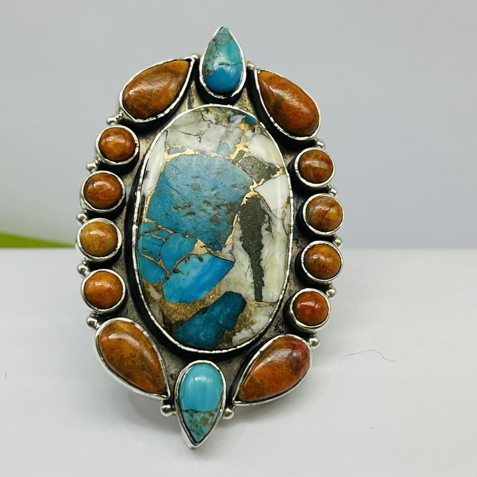 Oyster Cobre Turquesa Anillo Natural Turquesa Anillo de plata Anillo hecho a mano Anillo de bodas 925 Anillo de plata esterlina Anillo de mujer