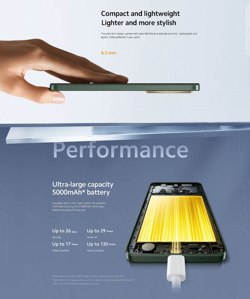 5000mAh (typ)Supports 10W chargingUSB Type-C
