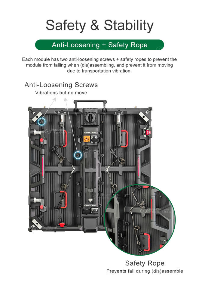 Prevent Design:Anti-loosening Screws + Safety Rope