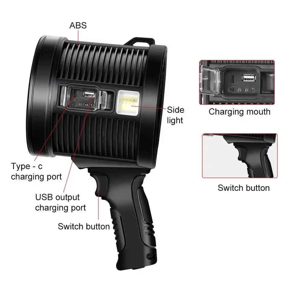 Lintern recargable Solar de alto brillo P50, linterna impermeable, linterna táctica LED de energía móvil, reflector para exteriores