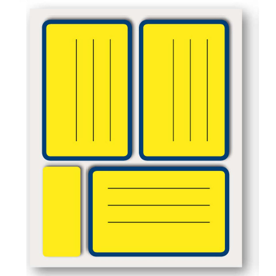 PAQUETE DE 30 ETIQUETAS DE 85X53MM CON BORDES AMARILLOS FLUORESCENTES