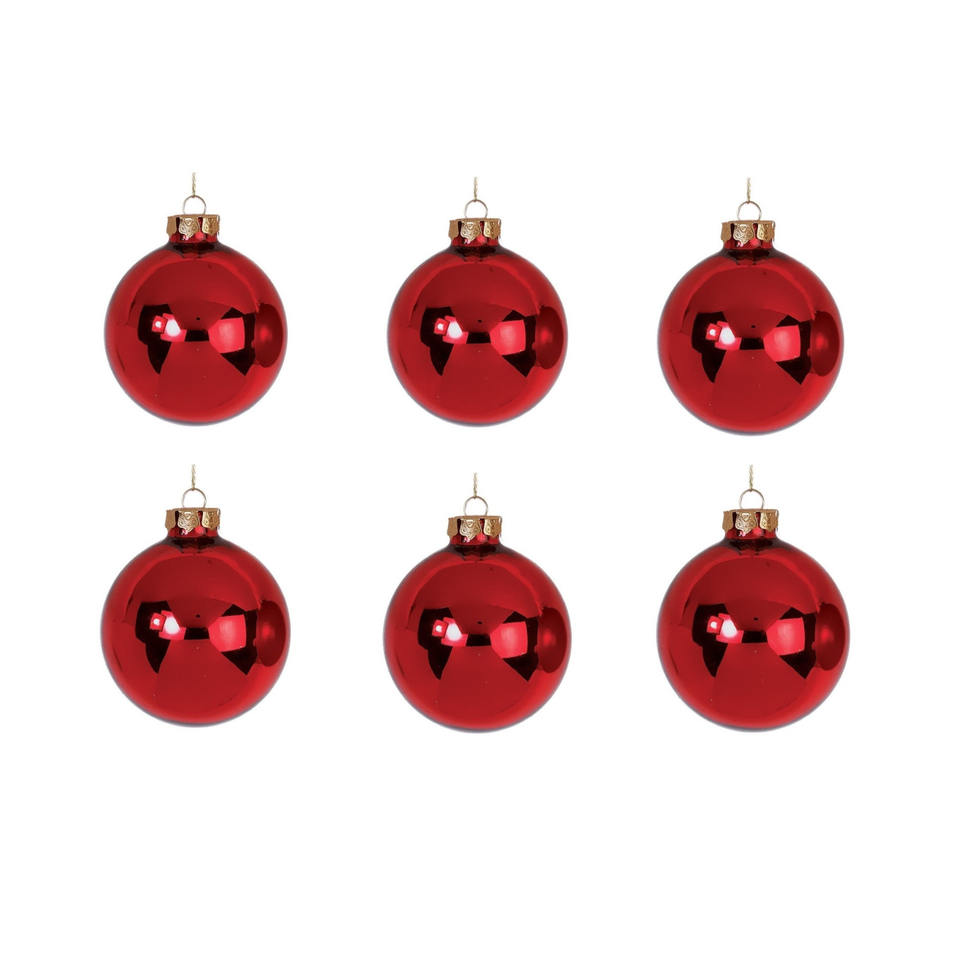 PAQUETE DE 6 BOLAS DE VIDRIO DIAMETRALMENTE REDONDAS 10 CM, COLOR ROJO BRILLANTE