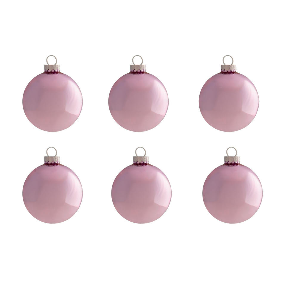 PAQUETE DE 6 BOLAS DE VIDRIO, DIAMETRO 8CM, COLOR ROSA BRILLANTE