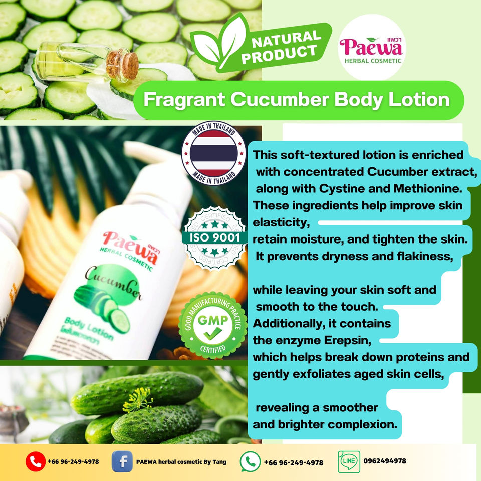 Loción Corporal Herbal con Extracto de Pepino Orgánico PAEWA 250ml Producto de Tendencia al por Mayor de Tailandia 2025