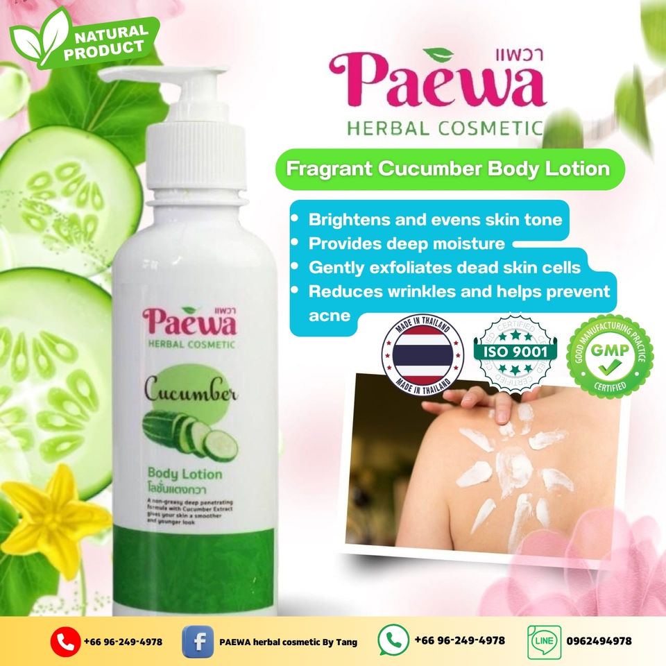Loción Corporal Herbal con Extracto de Pepino Orgánico PAEWA 250ml Producto de Tendencia al por Mayor de Tailandia 2025