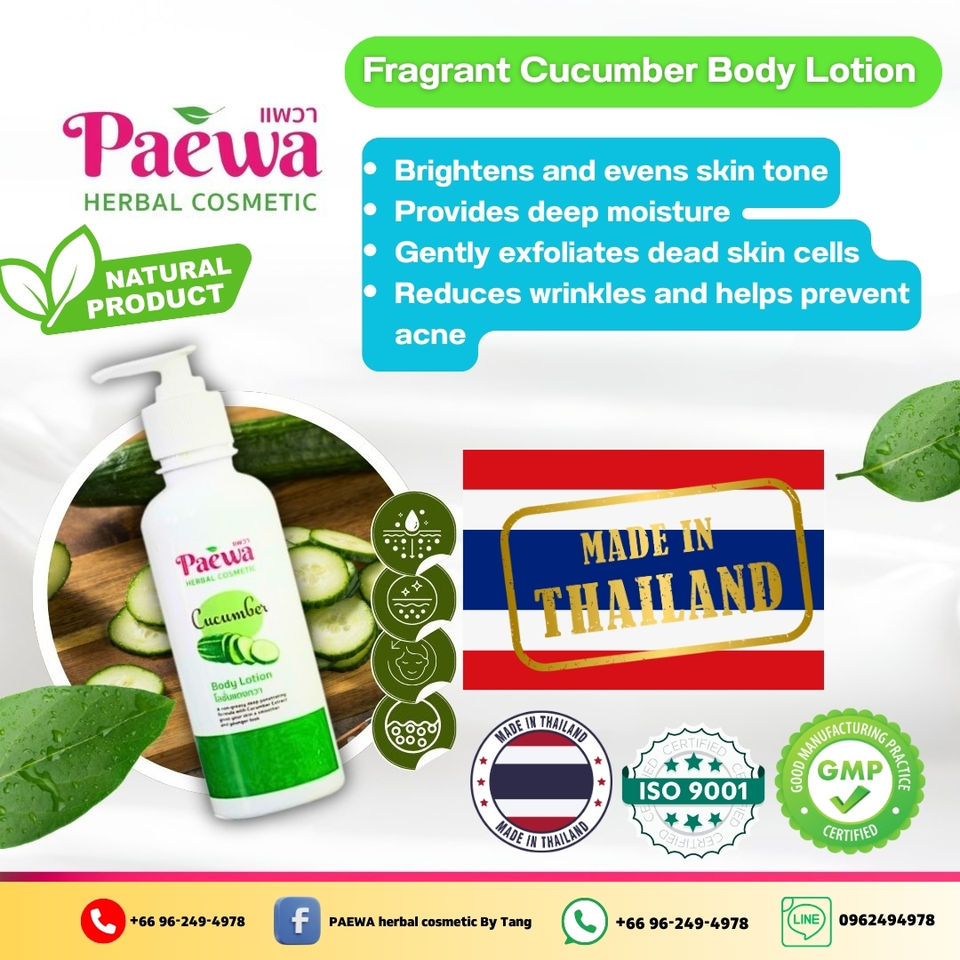 Loción Corporal Herbal con Extracto de Pepino Orgánico PAEWA 250ml Producto de Tendencia al por Mayor de Tailandia 2025
