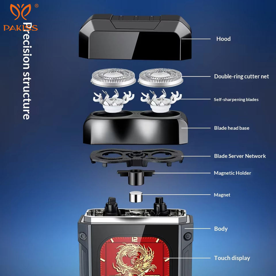 Afeitadora Eléctrica Inteligente con Pantalla Táctil PAKISS, Afeitadora Portátil Multifuncional con Doble Cuchilla y Carga Inteligente, Venta al por Mayor