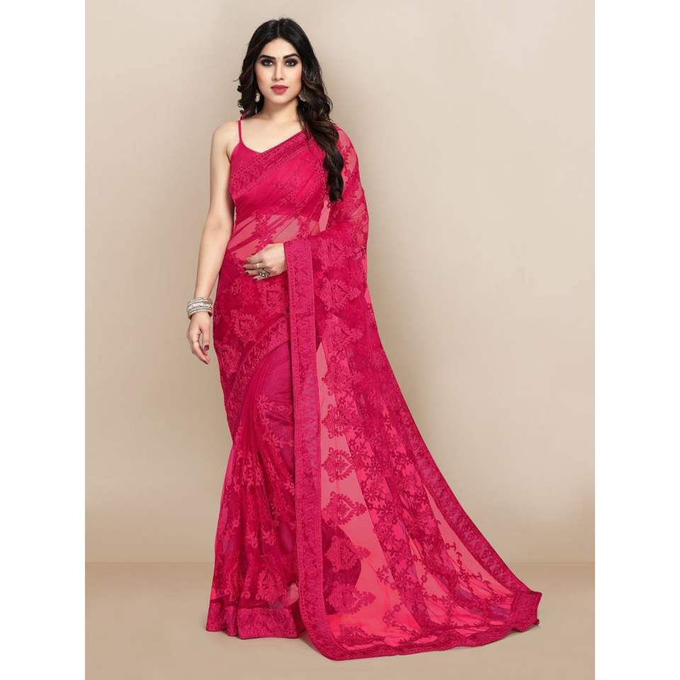 COLECCIÓN FIESTA TELA SUPERNET CON BORDADO TRABAJO SAREE + BLUSA DESCOSTADA ROSA