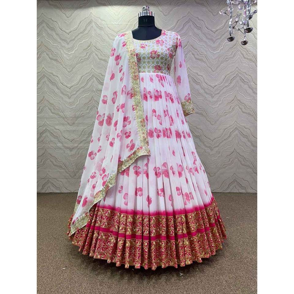 VESTIDO DE FIESTA GEORGETTE IMPRESIÓN DIGITAL BORDADO SECUENCIA TRABAJO VESTIDO CON DUPATTA ROSA