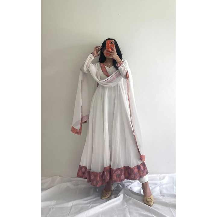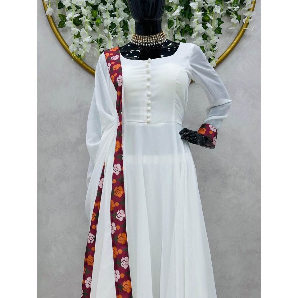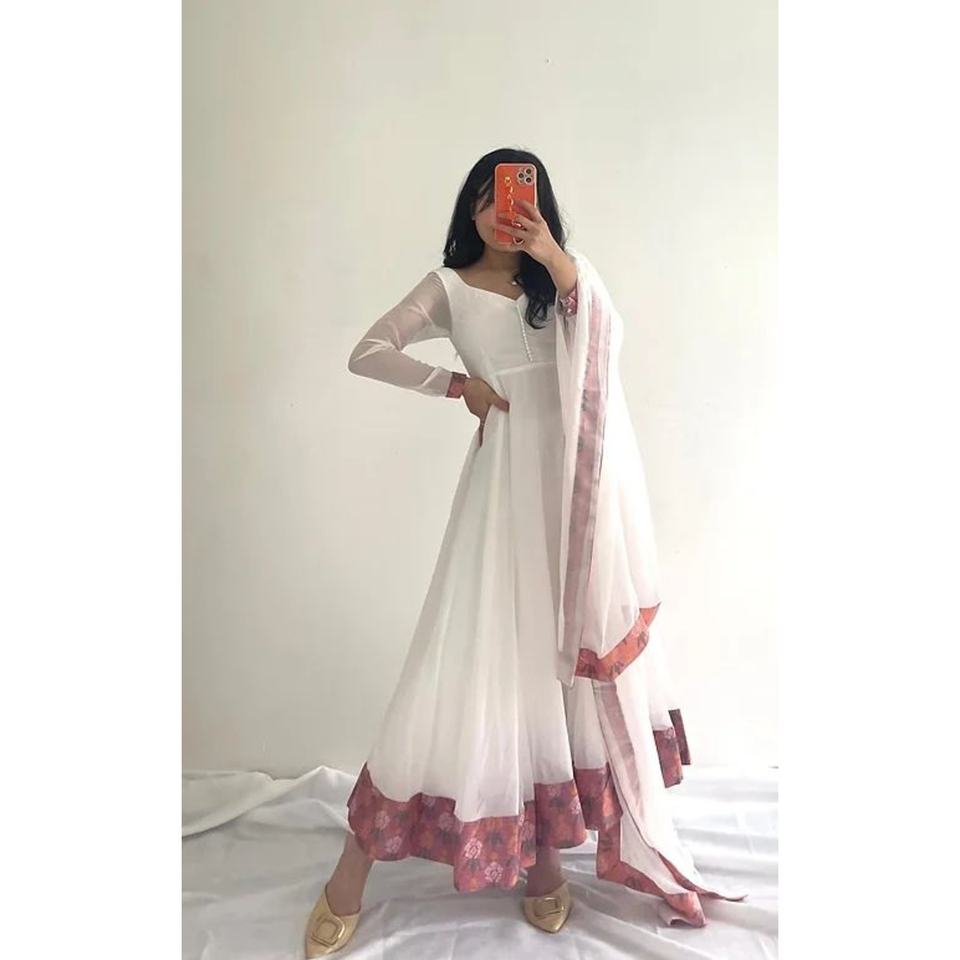 VESTIDO DE FIESTA DE GEORGETTE CON ENCAJE Y DUPATTA BLANCO