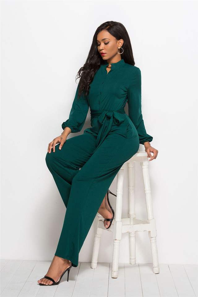 PASUXI 2024 moda cuello pico manga larga monos de cintura alta mujeres sólido una pieza mono de pierna ancha