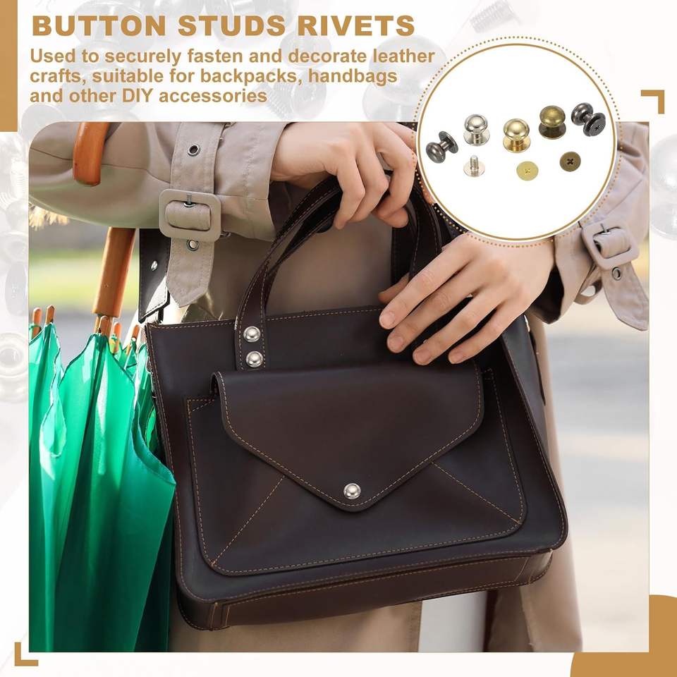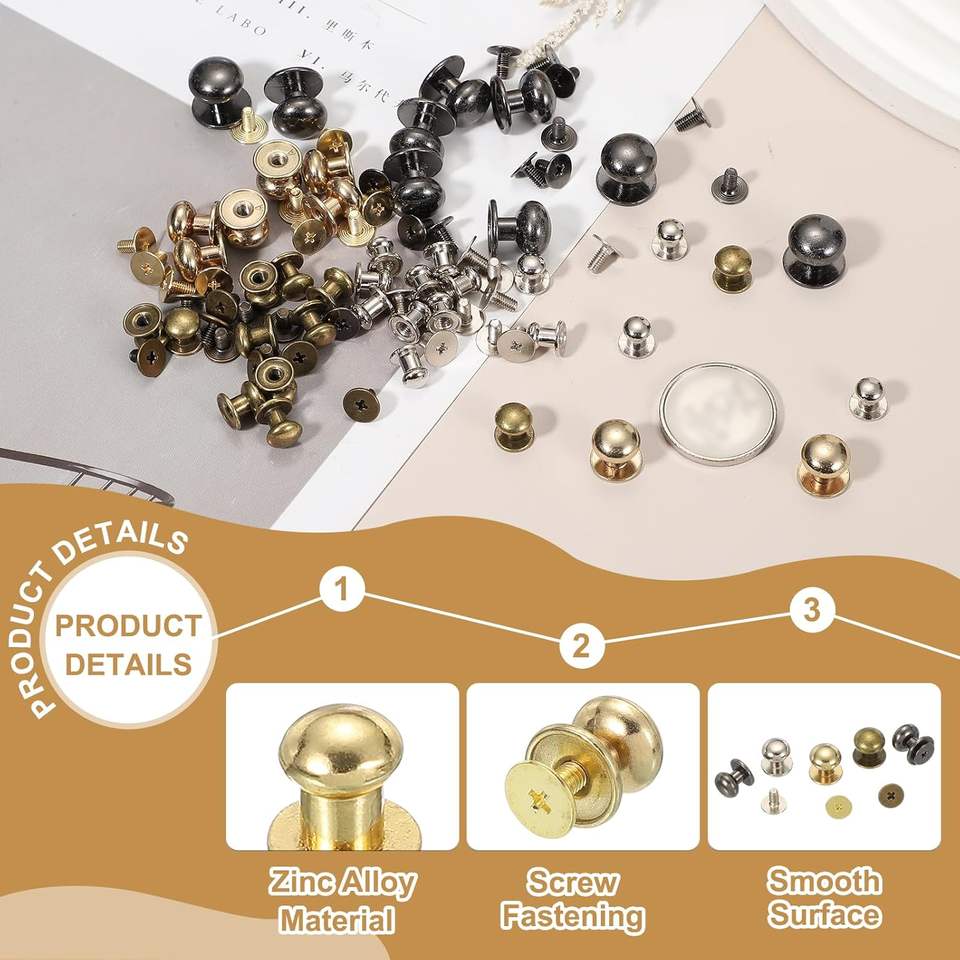 PATIKIL Mm Juego de remaches de cuero con cabeza esférica, tornillo de rosca trasera, botón de cabeza redonda, tornillo Chicago, remache de cabeza de bola para manualidades de cuero DIY
