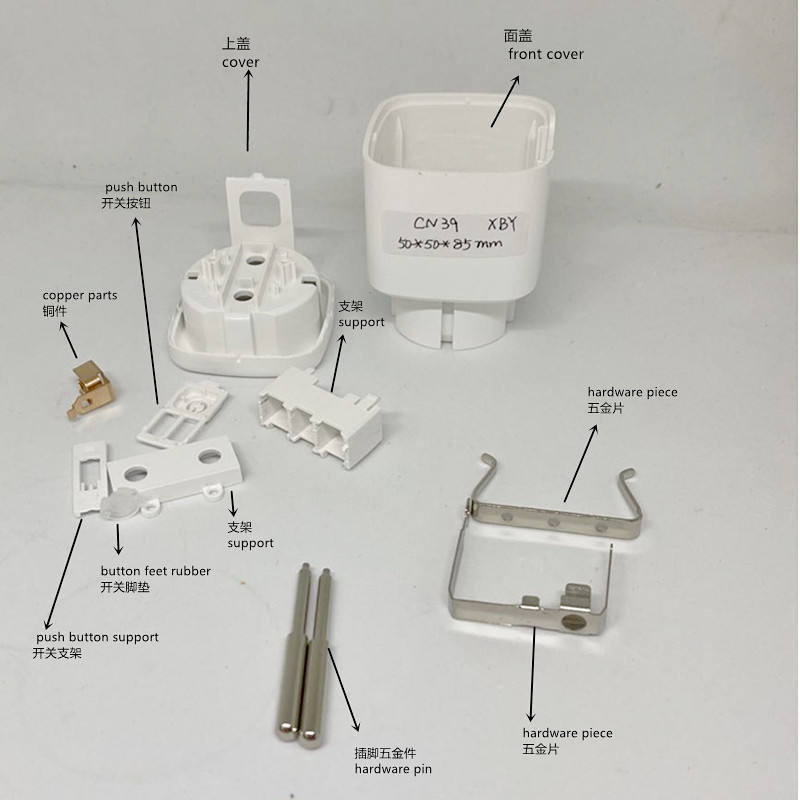PC/ABS Material salida multinacional UE FR enchufe estándar 50*50*85mm CN39 caso