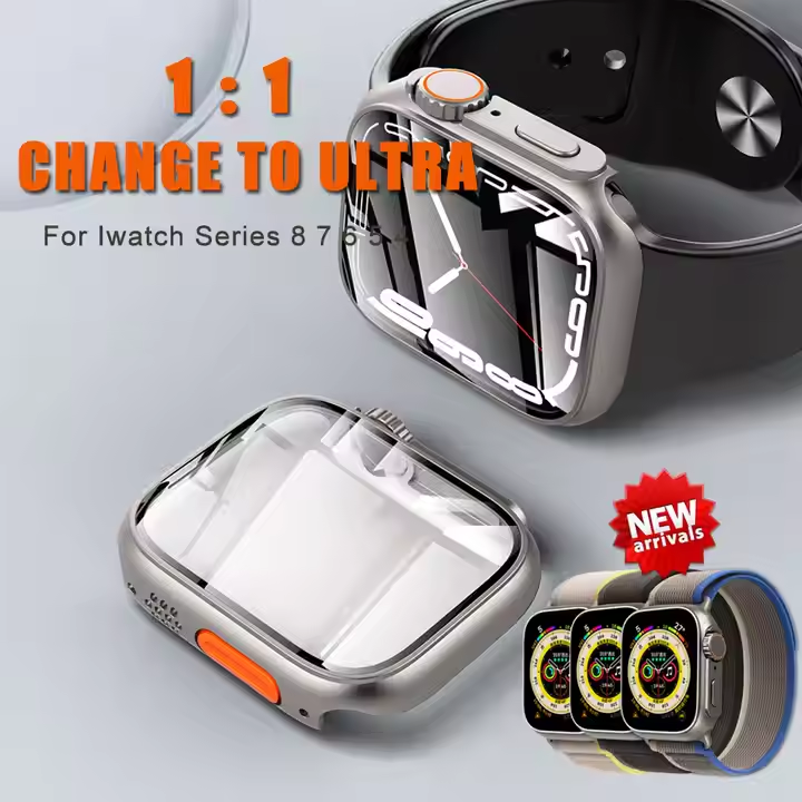 Funda protectora completa para pantalla de vidrio templado para PC, antiarañazos para Apple IWatch 8 7 6 SE 44 45mm, se convierte en Ultra Case