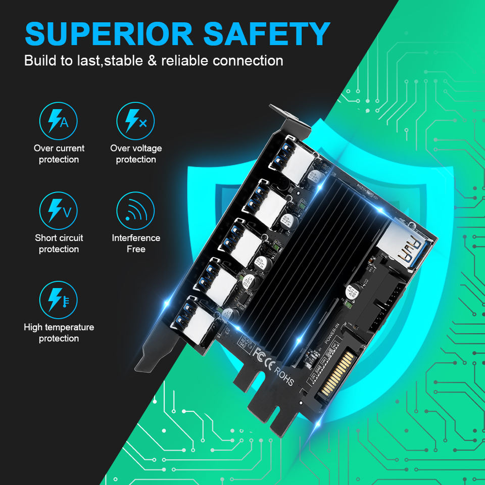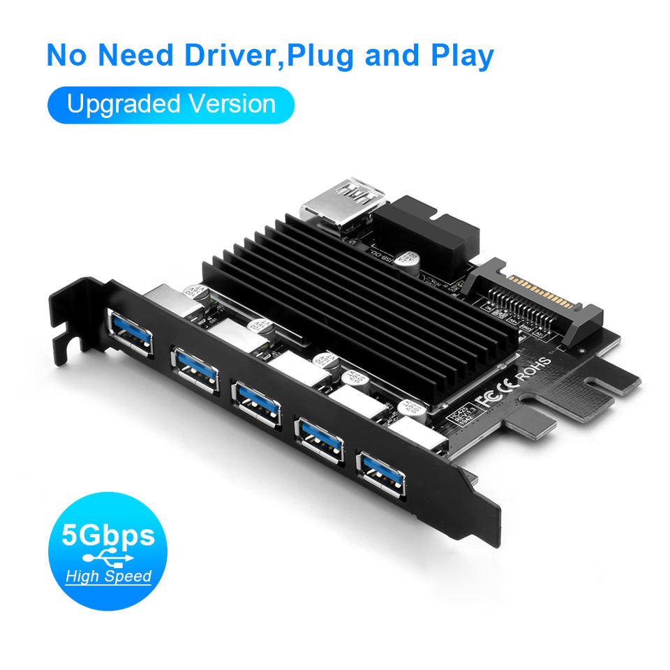 Tarjeta de Expansión de Alimentación PCI-E USB3.0 de 4 Pines, X1 a 5 Puertos, Tarjeta Adicional para Escritorio, en Existencia