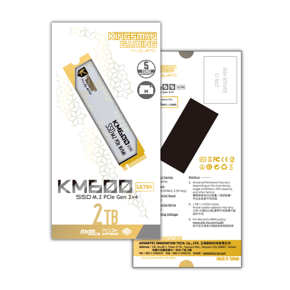 KINGSMAN PCIe Gen3 NVMe m.2 SSD Interno de 2TB sin DRAM