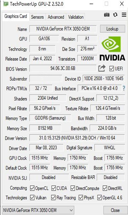 1550/1780 MHzReloj de Núcleo (Mhz)