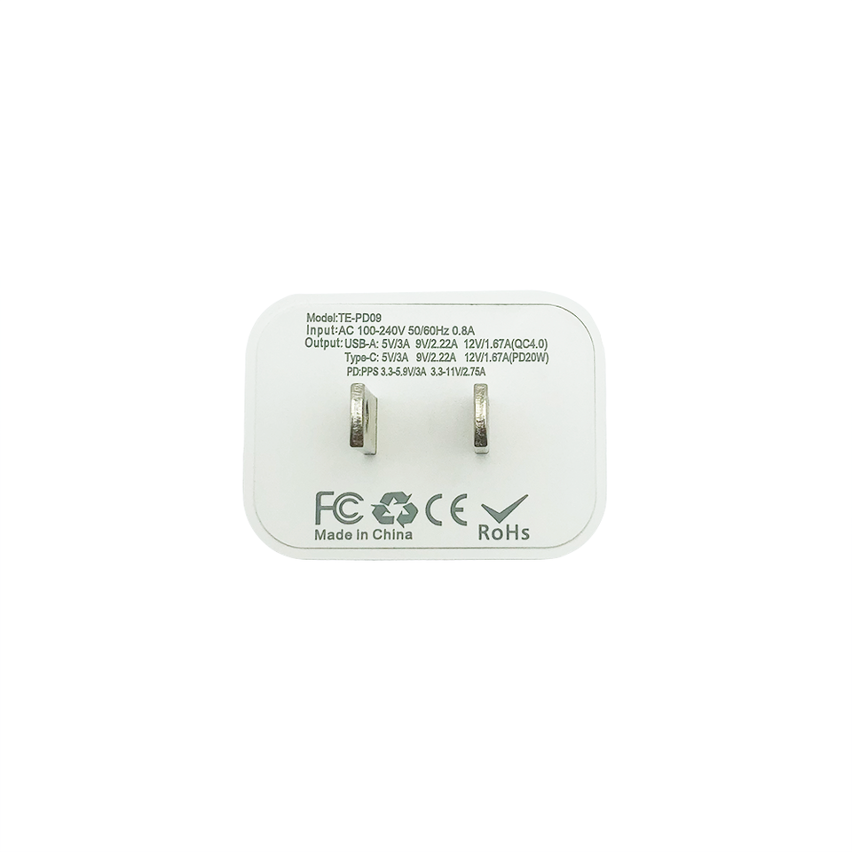 PD 20 W Carga de viaje de carga rápida Compatible con tableta y teléfono inteligente Cargador de pared USB