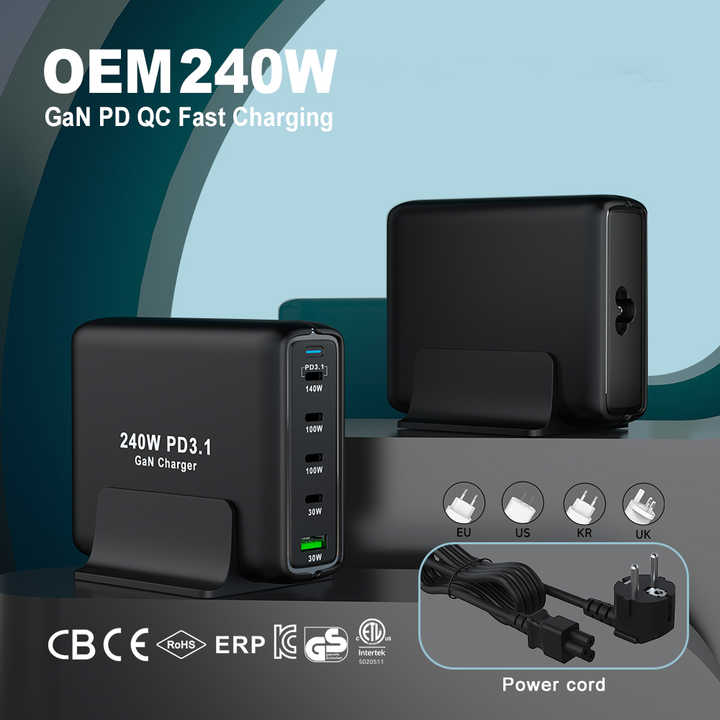 puerto USB:PD de 140 W + PD de 100 W + PD de 100 W + QC de 30 W + QC de 30 W