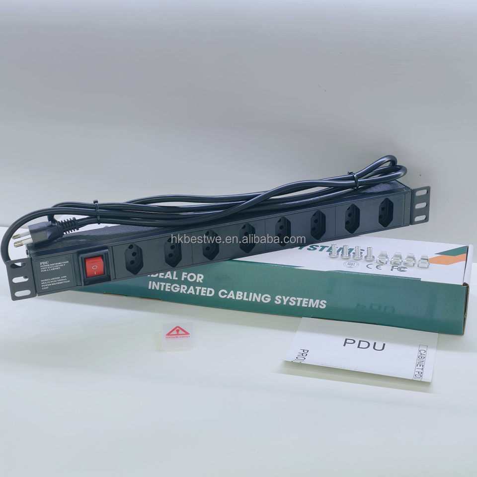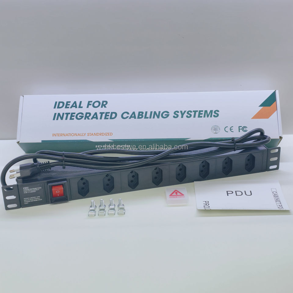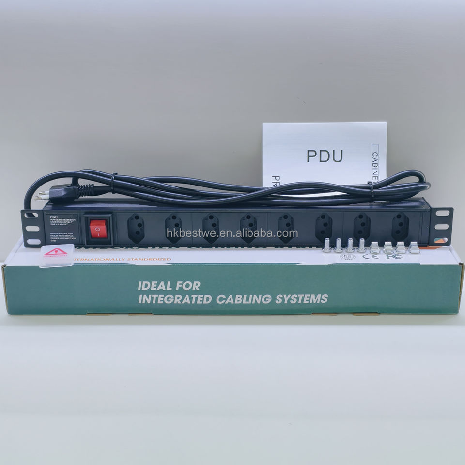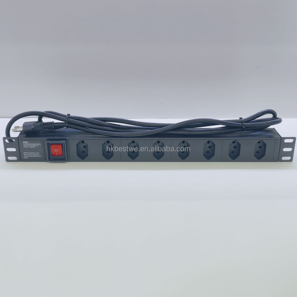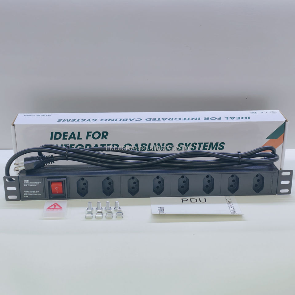 PDU Rackeável 1U 19" 8 Vías BR 250V con Interruptor, Ideal para Armario de Red Profesional