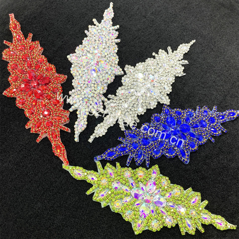 Parche de baile de diamantes de imitación con apliques de cuentas de diamantes de fijación caliente colorido personalizado PE001 para ropa