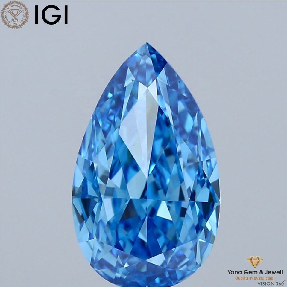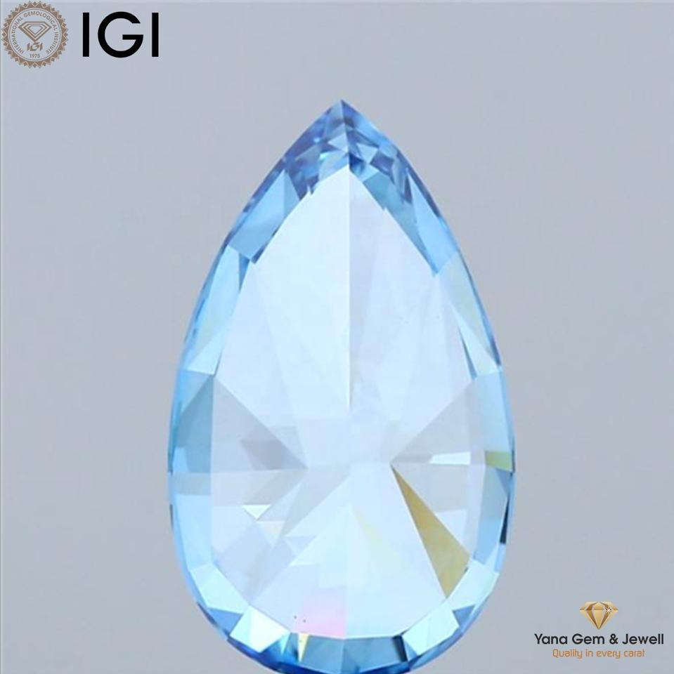 Diamante Cultivado en Laboratorio con Corte PEAR, Color Azul Intenso, Claridad VS1, 3.00 Quilates, con Certificado IGI para Anillo Personalizado