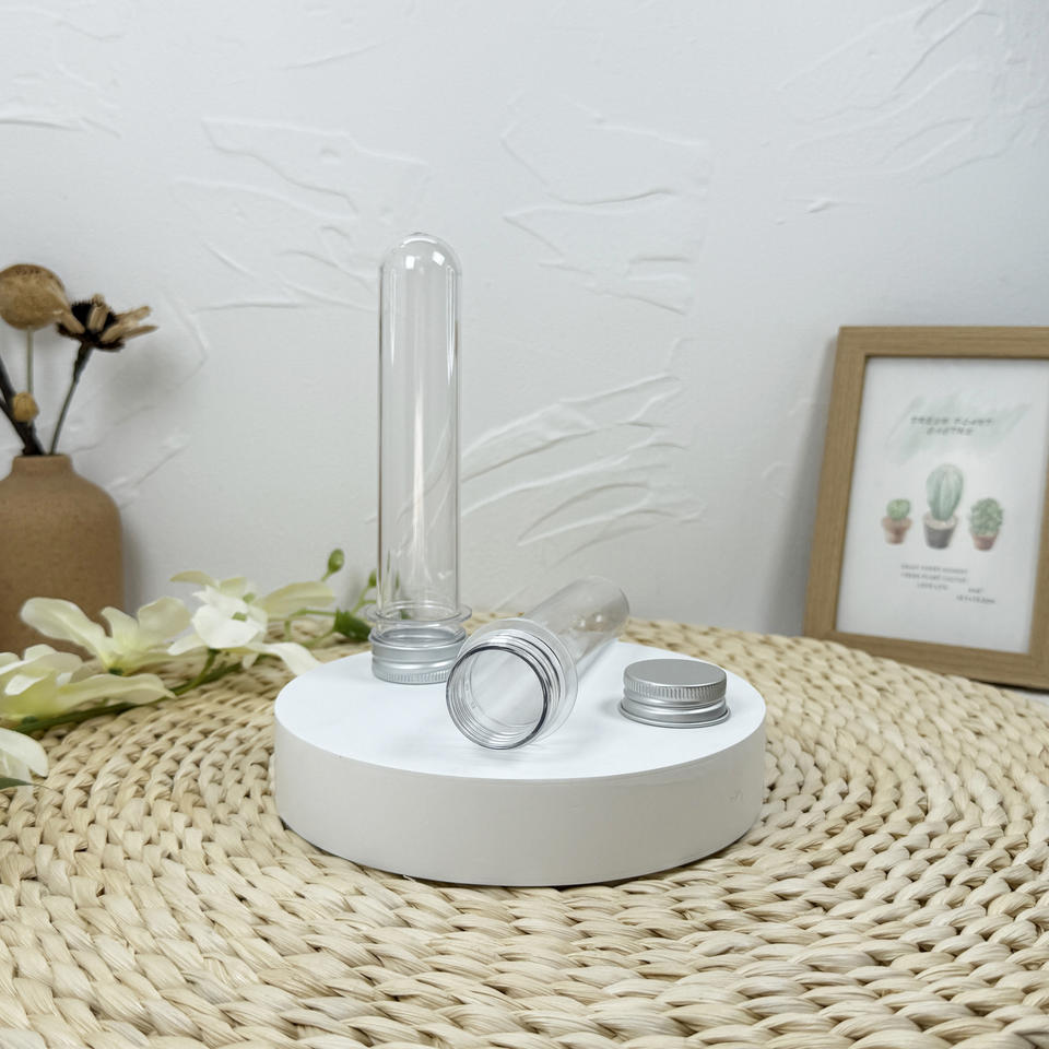 Tubos de ensayo de plástico PET de 115ml con tapas Contenedores de almacenamiento de 1,2x7,4mm para polvo de cuentas de caramelo