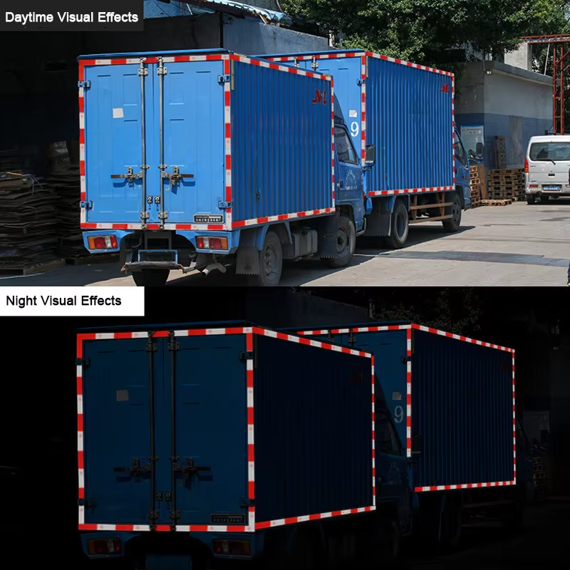 Cinta Reflectante de Vinilo PET DOT C2, Adhesivo de Seguridad Reflectante Rojo y Blanco, Cinta Reflectante Microprismática para Vehículos, para Camiones