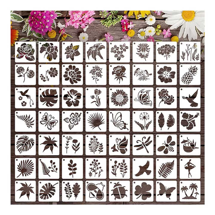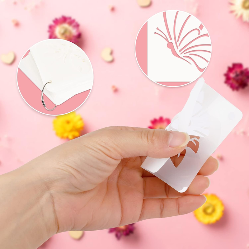 Juego de plantillas de primavera para cuaderno, decoración de diario, flor, mariposa, hojas, plantillas de pájaros para dibujar