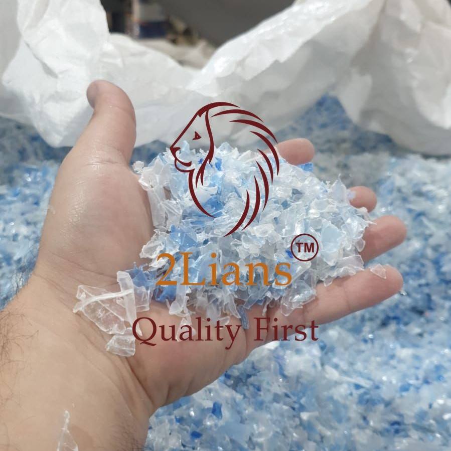 Botellas PET copos lavado en caliente natural/azul transparente