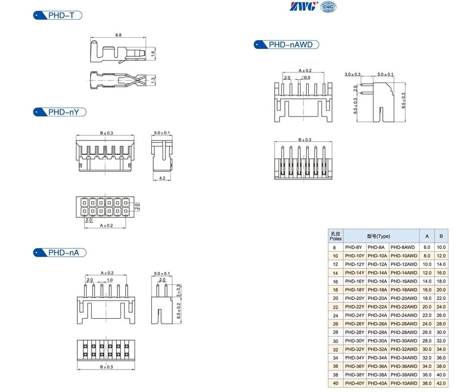 Terminal y Conector PCB RGB para Motocicleta PHD 2.0, Conector Hembra ODM/OEM de Doble Fila, Terminal PCB SMT JST de 8-40 Pines
