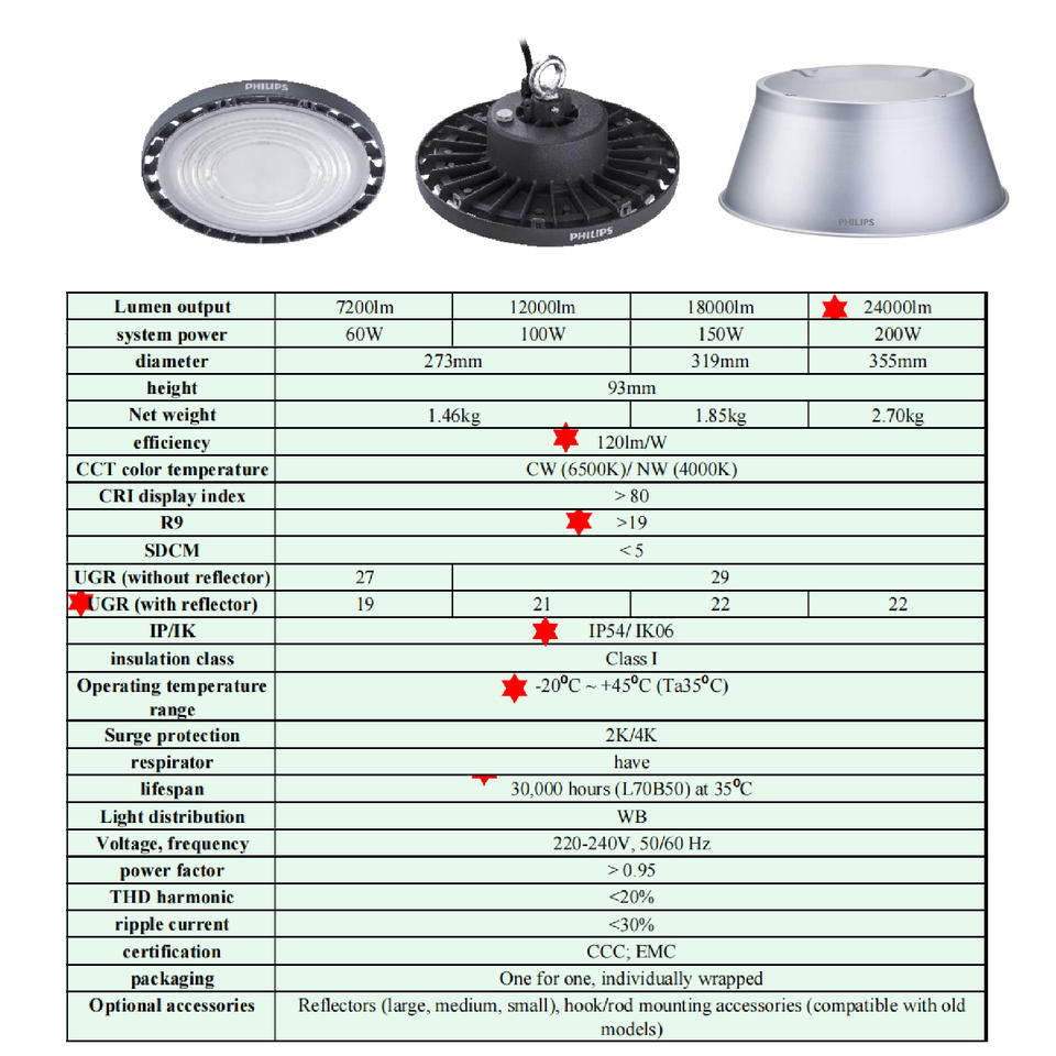 PHILIPS BY238P 60W 100W 150W 200W IP54 Lámpara LED de Alta Potencia para Aplicaciones en Almacenes