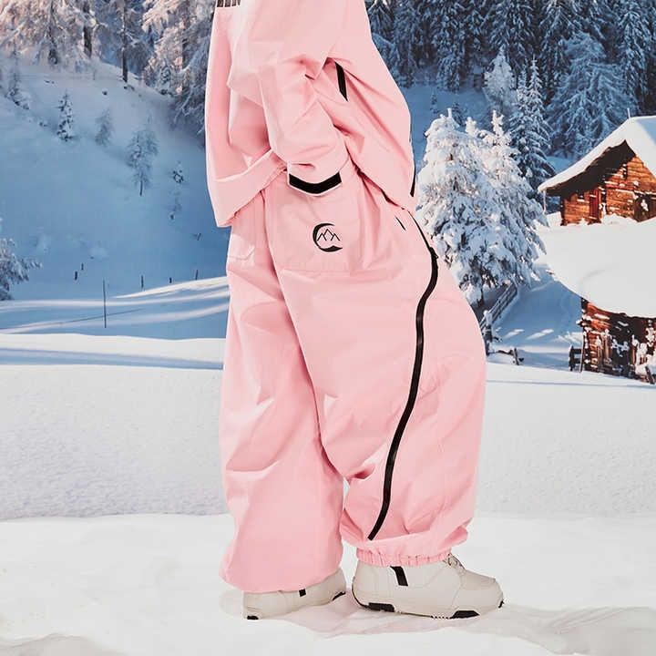 PINK Chaqueta de esquí de invierno Equipo de snowboard A prueba de viento Sudadera con capucha impermeable Pantalones de talla grande Estampado de punto Ropa de montaña para deportes de nieve