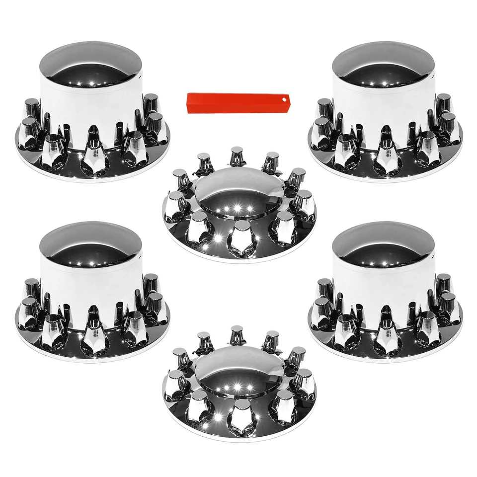 PINOMETAL, tapacubos extraíbles personalizados, Kit de cubierta de eje cromado, de 33mm tapacubos, cubierta de tuerca de rueda de semi camión con pinchos delanteros y traseros