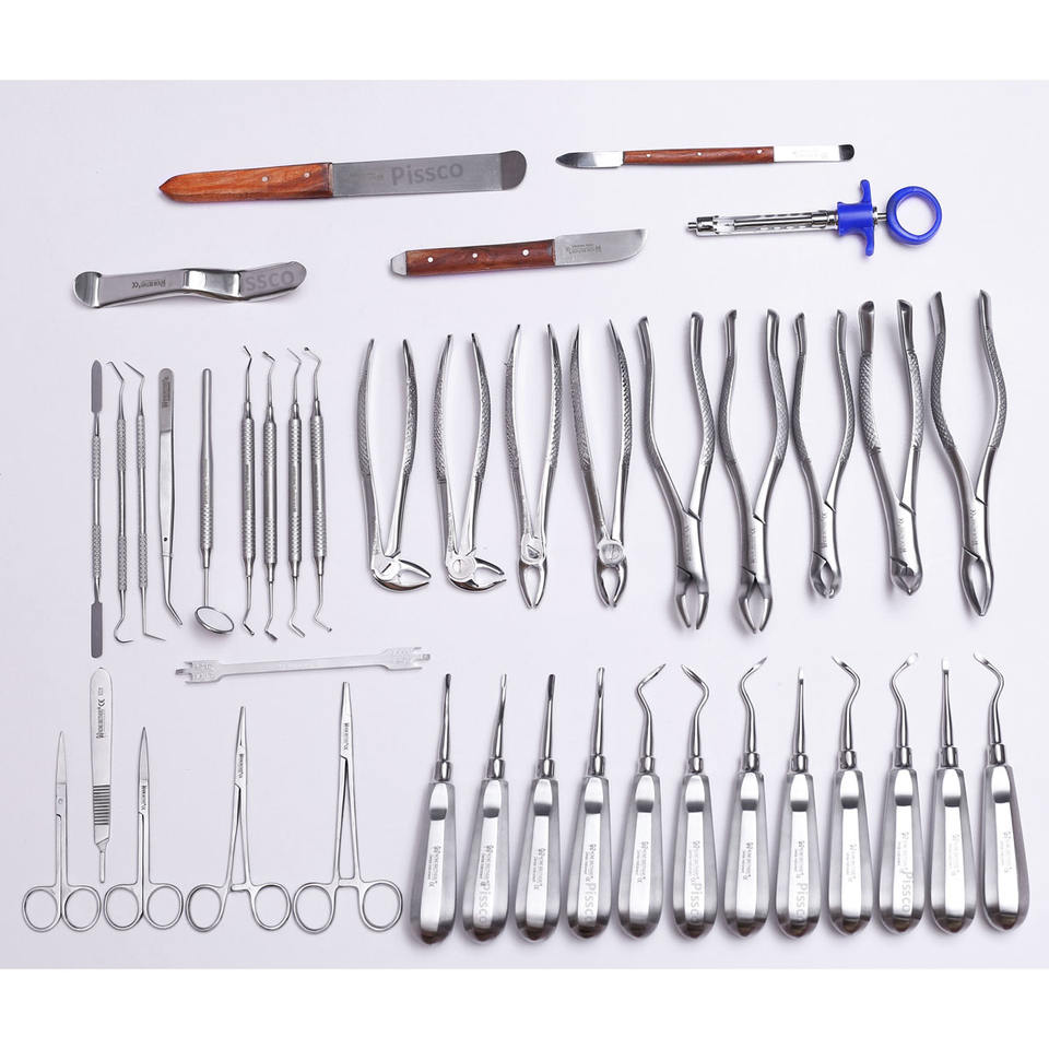 Kit de Instrumentos de Extracción Dental PISSCO, 46 Piezas, Kit de Extracción Quirúrgica Dental, Kit de Fórceps para Extracción de Dientes, Kit de Cirugía Oral