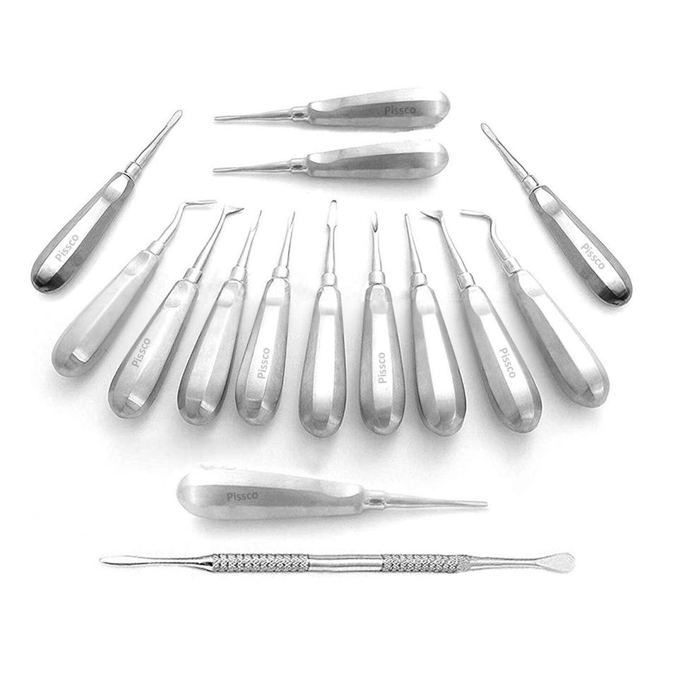 Kit de Instrumentos de Extracción Dental de Fábrica PISSCO, Juego de Instrumentos de Extracción de 15 Piezas, Kit de Extracción de Raíces Dentales