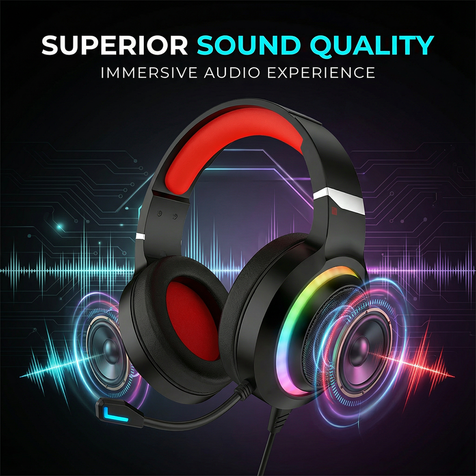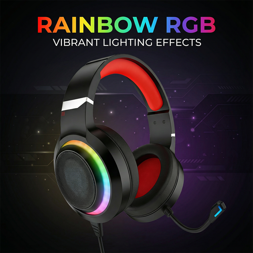 Audífonos Gamer PJT-DEP2469 RGB LED con Cable, Conexión USB, para Deportes y DJ, Alta Calidad de Sonido