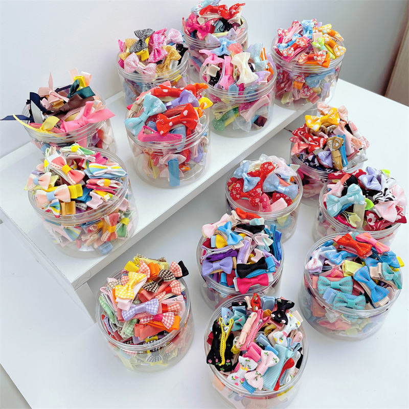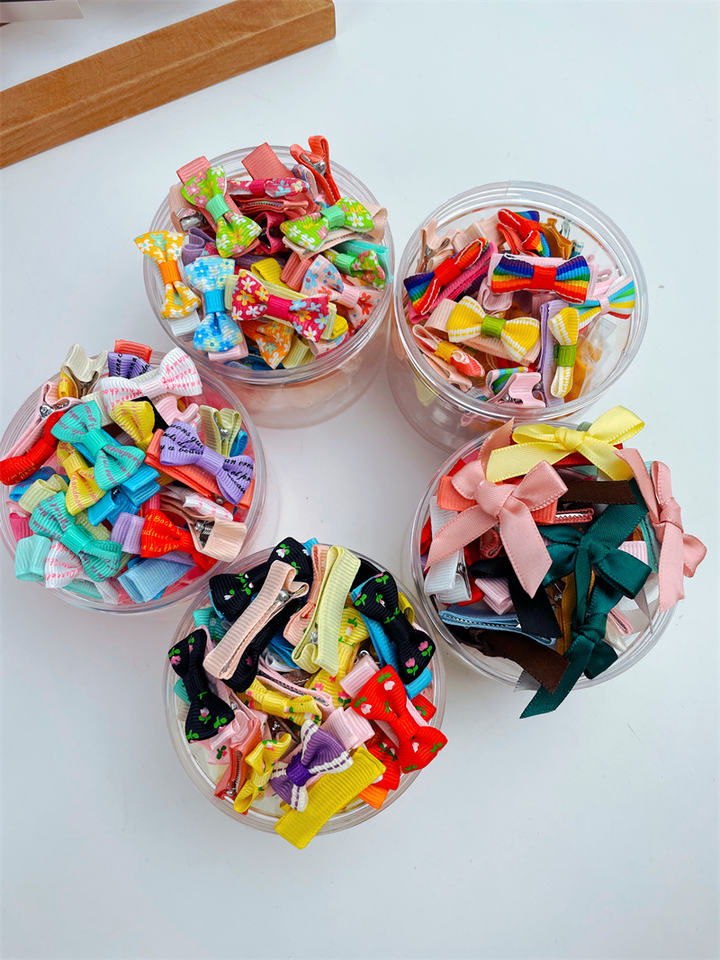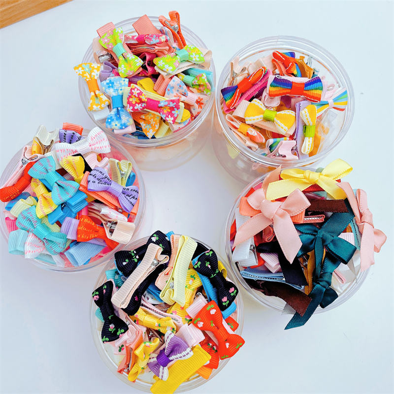 Lazo para el pelo de tamaño pequeño con cinta estampada y clip semirrígido, no daña el cabello del bebé, accesorios para el cabello