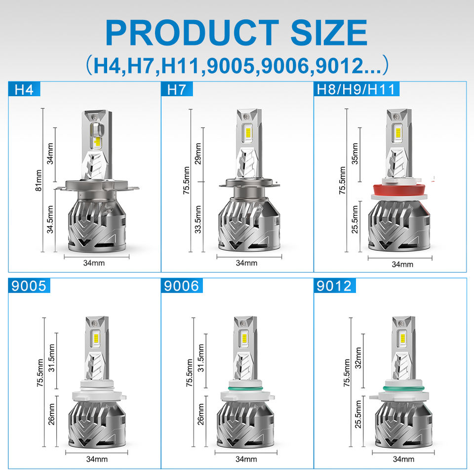 GESLLA Led Faro, H1 H3 H4 H7 H8 H9 H10 H11 H13 H15 H16 9004 9005 9006 9007 5202 880 881 D1s D2s D3s F2OE No.
