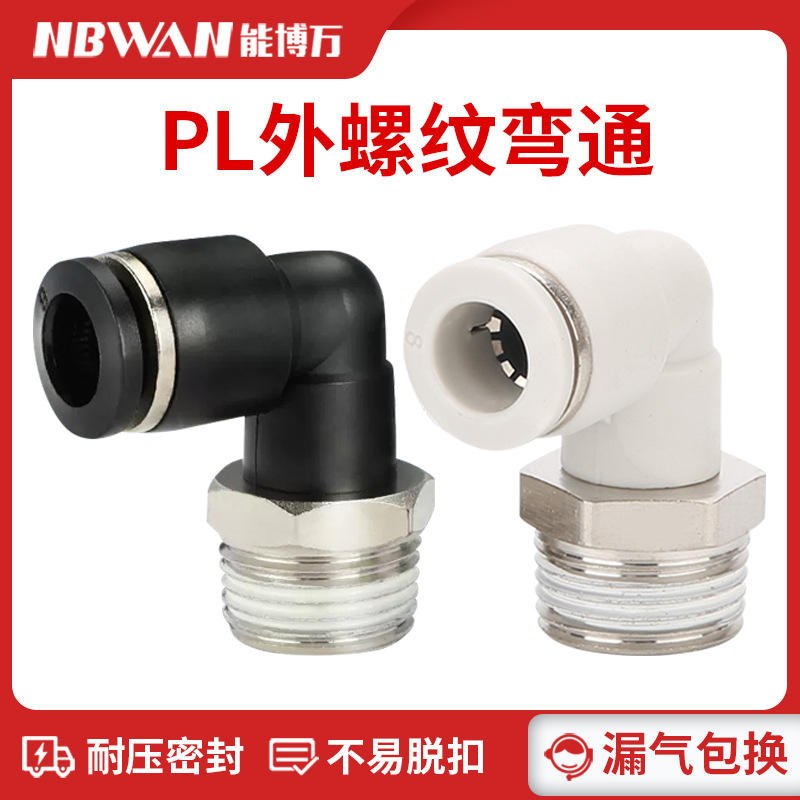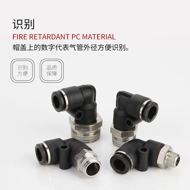 Conector Neumático Rápido PL8-02 de Ángulo Recto, Rosca 6-01, Curva 10-03, Conector Rápido de Plástico para Piezas Neumáticas