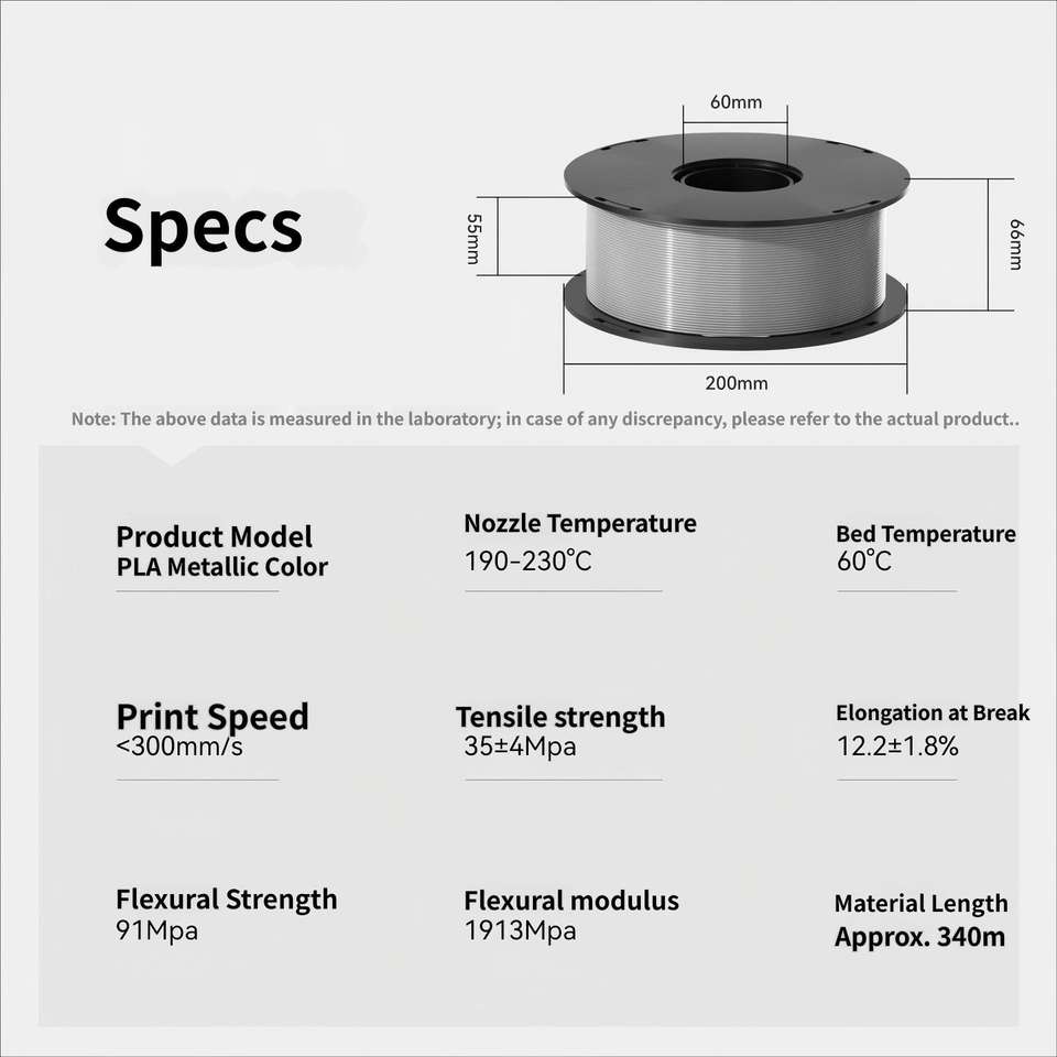 Filamento Metálico PLA para Impresora 3D, 1.75mm, 1KG, para Impresoras 3D Bambu Lab y Creality