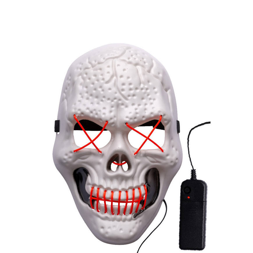 MÁSCARA DE CALAVARDA DE PLÁSTICO CON DECORACIÓN DE LUZ LED ROJA