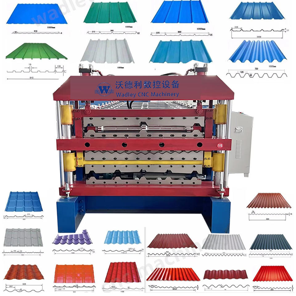 Máquina perfiladora de tejas PLC para paneles corrugados de chapa de acero, máquina laminadora de láminas para techos de tres capas, fácil operación