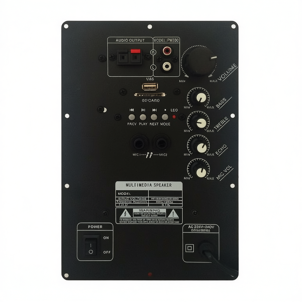 Módulo amplificador PM100 para altavoz, salida de audio, entrada USB, tarjeta SD, control de volumen del micrófono