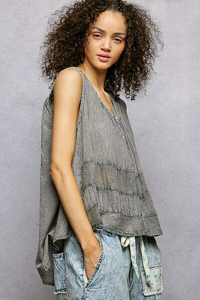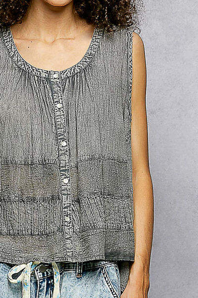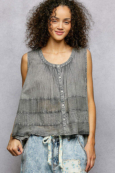 Camiseta sin mangas con cuello redondo y botones POL con contraste de crochet
