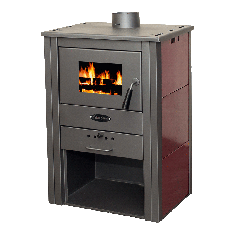 Estufa de Leña POLLINO Termo Kreka LUX de 8 kW, Hierro Fundido, Diseño Europeo para Calefacción Interior, para Cocina y Chalet