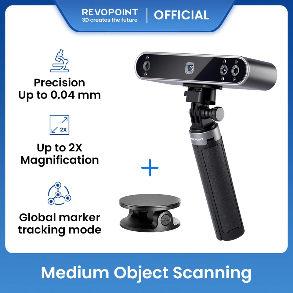 Escáner 3D Portátil POP 3 PLUS Revopoint de Alta Precisión, 18 fps, 0.04 mm, Material ABS, Conectividad USB/WiFi, Compatible con PLY/OBJ/STL