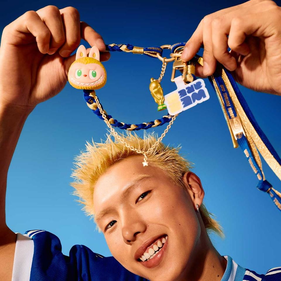 POPMART Auténtico Labubu The Monsters Series: Cajas Sorpresa con Cordón Largo, Lindo Colgante de Fútbol para Bolsa, Encantador Llavero, Regalo