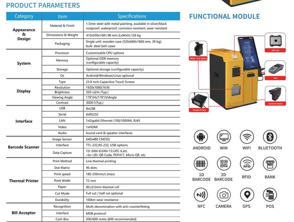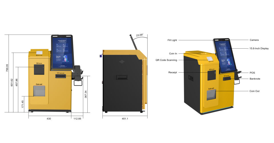 Terminal Punto de Venta con Pantalla Táctil de 15.6 Pulgadas, Quiosco de Pago con Aceptador de Billetes y Monedas para Tiendas de Alimentos y Centros Comerciales