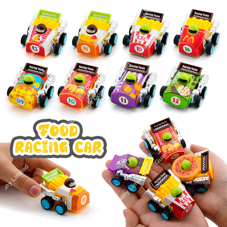 PP 16 estilo Mini coche de carreras de plástico juguete hamburguesa patatas fritas palomitas pastel jugo juguete para niños comida pequeño tirar hacia atrás coche de juguete